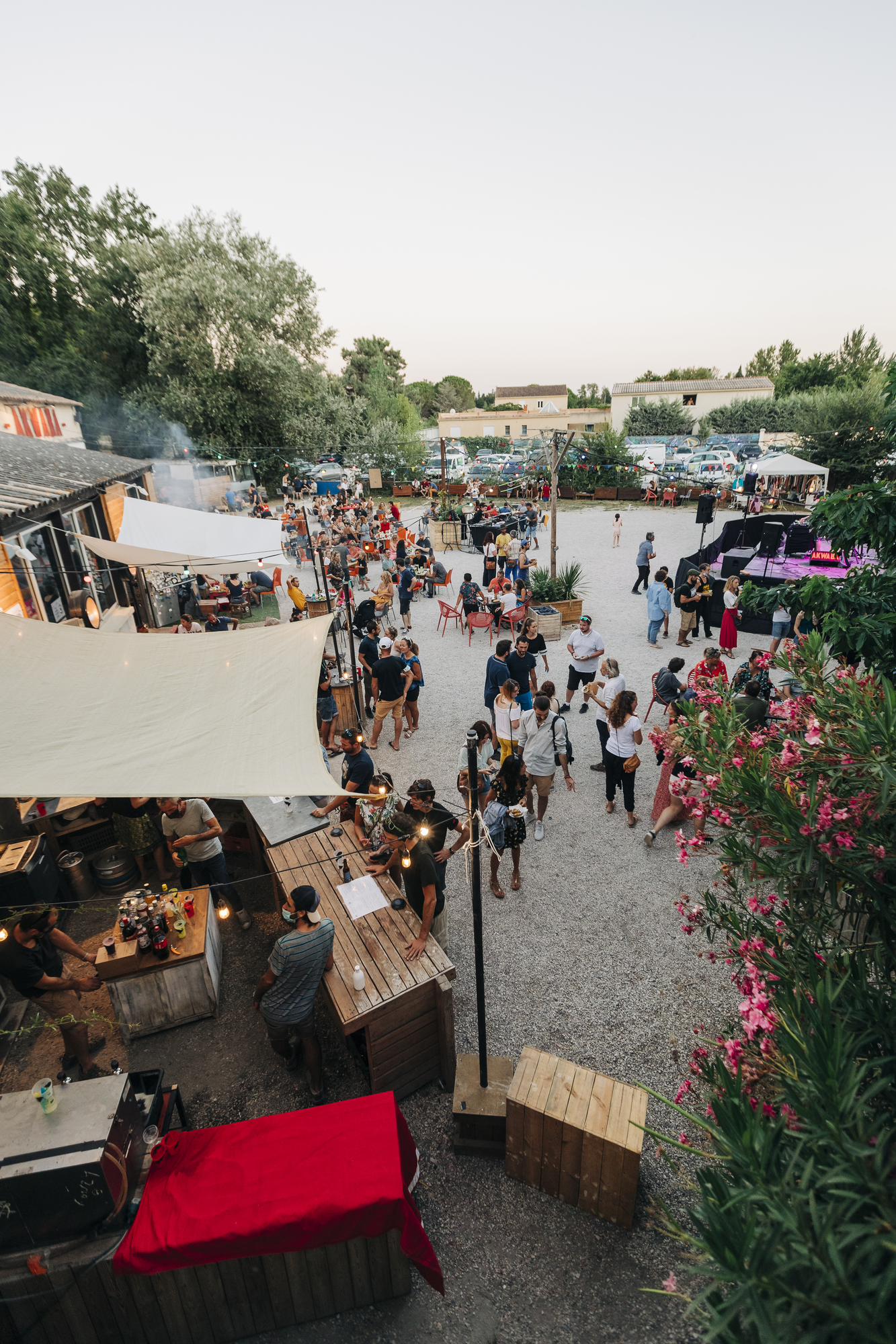 Découvrez notre location de la Cour Extérieure : un espace unique de 1400 m² offrant de nombreuses possibilités pour vos événements en plein air. Cet espace est équipé d’une terrasse avec un mobilier de terrasse éco-conçu en bois de palettes recyclées par l’association Green Street, ainsi qu’un bar convivial pour répondre à toutes vos attentes.
